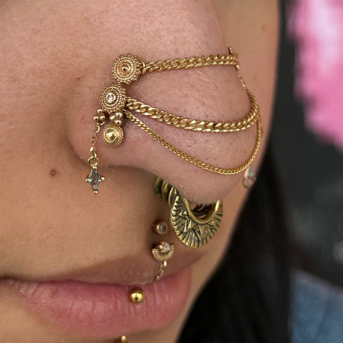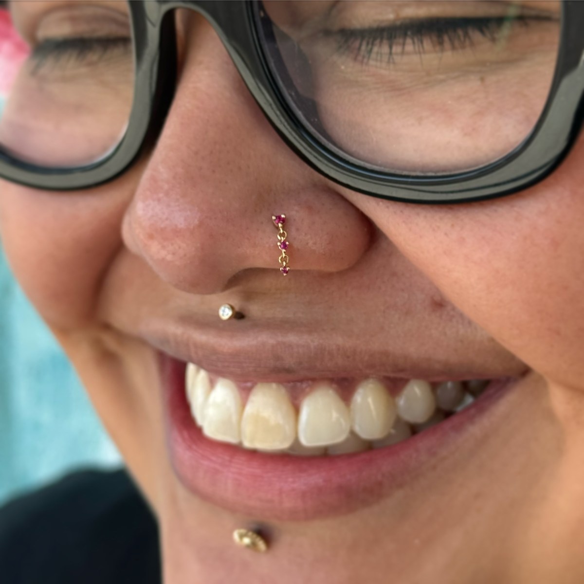 Frankie Muñiz is a queer body piercer who started their career in early 2016. Quickly falling in love with the empowerment and beauty that comes with body piercing, she has been determined to learn all she can about the craft ever since. Frankie is a proud member of the Association of Professional Piercers and a GIA Applied Jewelry Professional. They also regularly attend seminars and conferences to hone in and keep up-to-date with their practices. They particularly enjoy coming up with unique and fun jewelry combinations, and piercings in multiples. But above all, Frankie believes that the connection built through the art of body piercing is like no other, and prioritizes the happiness, safety, and trust of everybody who sits in their chair.